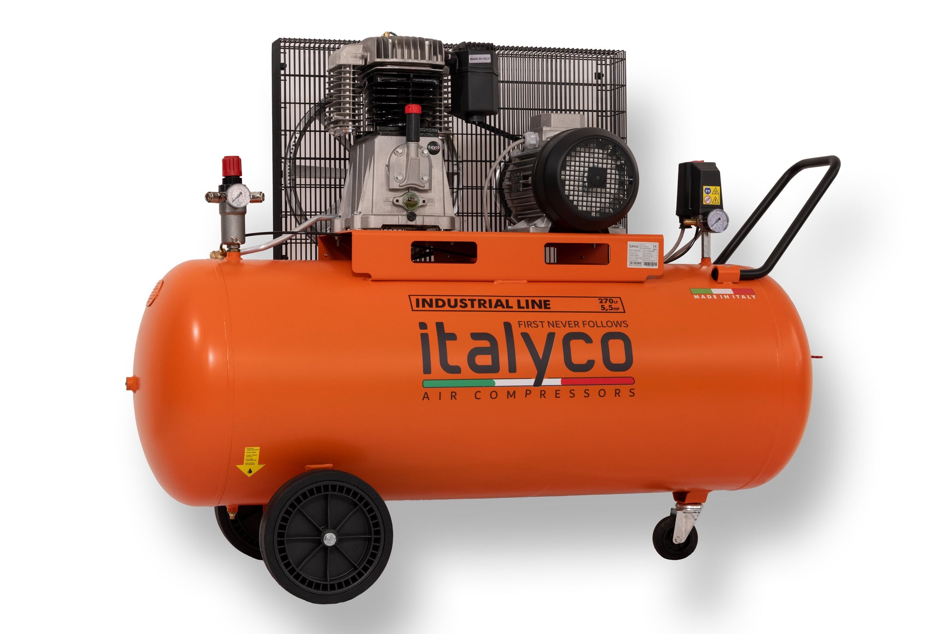 A KP 300/7,5 egy nagy teljesítményű, kétfokozatú, kéthengeres, ékszíjhajtású dugattyús kompresszor, amelyet az ITALYCO több mint 45 évnyi olasz ipari tapasztalata és gyártói precizitása formált professzionális szintű berendezéssé. A 7,5 LE / 5,5 kW-os motor és a 270 literes tartály együttesen biztosítja a folyamatos, nagy igénybevételű használatra alkalmas működést, míg a 820–830 l/perc levegőszállítás stabil légellátást nyújt még terhelés alatt is.